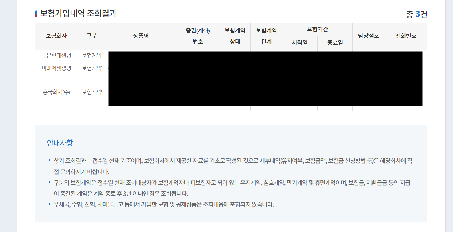 약 30초가 지나면 이렇게 가입 내역이 쭉 뜹니다.